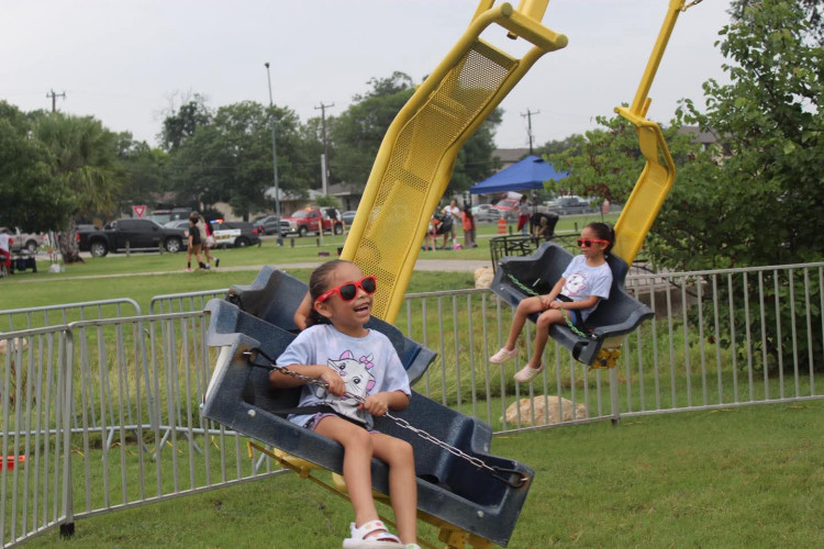The Dixie Swing is a fixed-chair swing ride that rapidly spins riders 360 degrees while the G-forces pull the chairs nearly horizontal